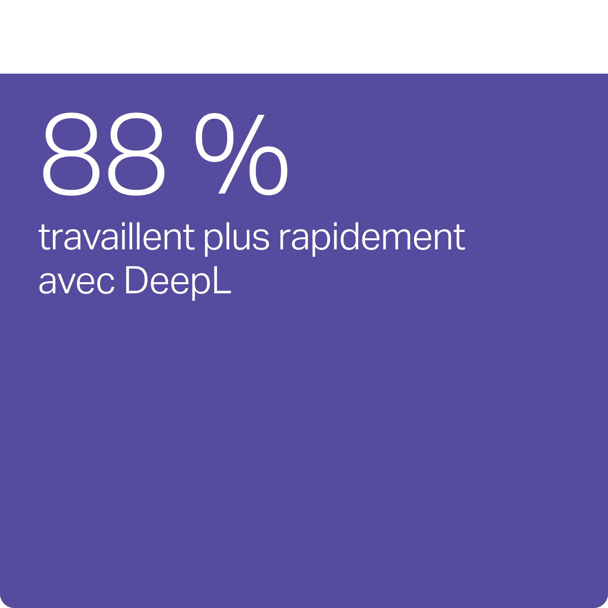 88 % des professionnels des services financiers affirment que DeepL les aide à travailler plus rapidement, et 85 % indique que les traductions sont de haute qualité.