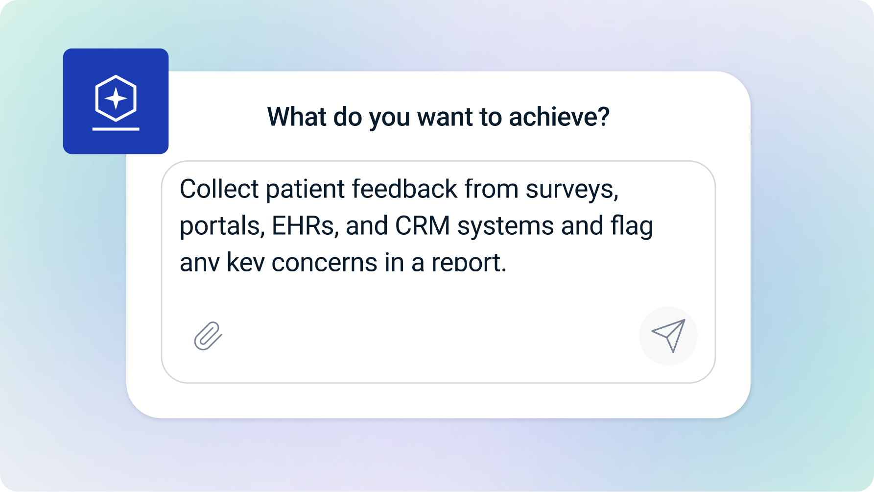 Безпечно автоматизуйте рутинні завдання, від аналізу відгуків пацієнтів до моніторингу дотримання вимог, за допомогою ШІ-асистента, який дасть вашій команді можливість зосередитися на наданні медичної допомоги.